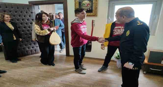 Adana Emniyet Müdürlüğünün “Sevgiyle Büyüyoruz” projesi çerçevesinde bağlama kursuna katılan öğrenciler polis haftası çerçevesinde Emniyet Müdürü Doğan İnci'yi makamında ziyaret ederek sazlı sözlü kutlama yaptı.