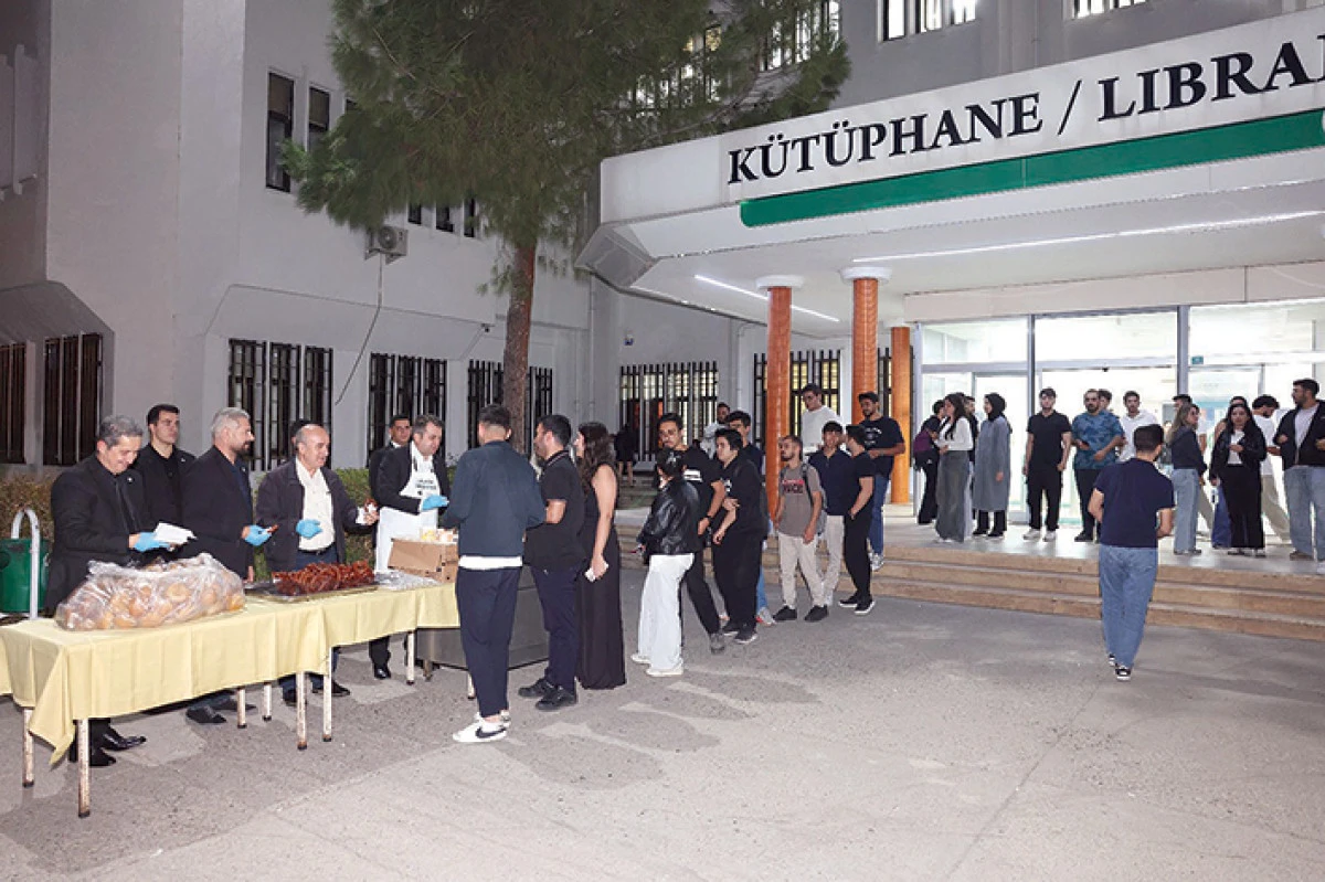 Gün boyu dolup taşan kütüphanede öğrenciler, sınavlarına hazırlanmak için geç saatlere kadar ders çalışıyor. Üniversite yönetimi, öğrencilerin motivasyonunu artırmak için bu yıl da geleneksel hale gelen sabah ve akşam çorba ikramlarını sürdürüyor. Sıcak çorba servisinin yanı sıra, Rektör Prof. Dr. Hamit Emrah Beriş’in ziyareti de sınav haftasında öğrencilere moral verdi. Merkez Kütüphane’yi ziyaret ederek öğrencilerle bir araya gelen Rektör Prof. Dr. Beriş, ders çalışan öğrencilere tatlı ikramında bulunarak onların moralini yükseltti. Öğrencilerle sohbet eden Rektör Prof. Dr. Beriş, sınav sürecinde gösterdikleri özveri ve gayretten dolayı hepsini tebrik etti.